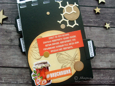 Изначально хотела сделать один блокнот, но уж больно толстый он получился - нет у меня таких больших пружинок. Поэтому разделила на два - тематически. Сначала всякие полезные продукты: