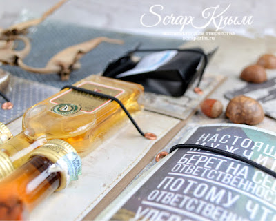 8. А теперь наступила очередь оформления крышки. В декорировании использовала, вырубку, скрапбумагу коллекции "Ты мой космос" от Флер Дизайн, текстурную пасту, акриловые краски, штампы и конечно же чипборд - Заначка и Мужской набор