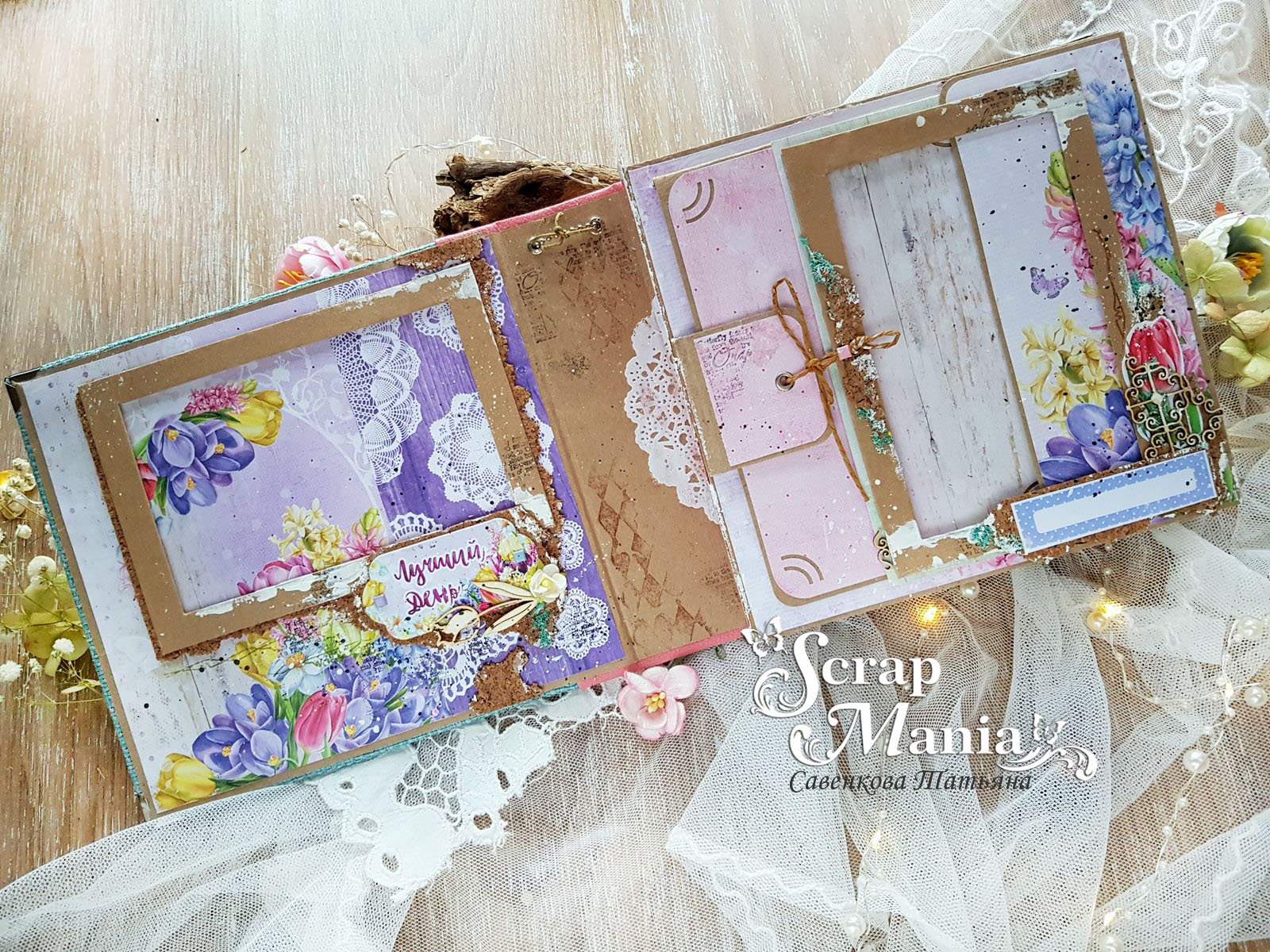 Бумага просто потрясающая! Если вы поставили себе целью сделать работу, которая воплощает весну, то больше искать ничего не надо. Посмотрите на детали альбома, развороты - надеюсь, мне удалось вдохновить вас.
